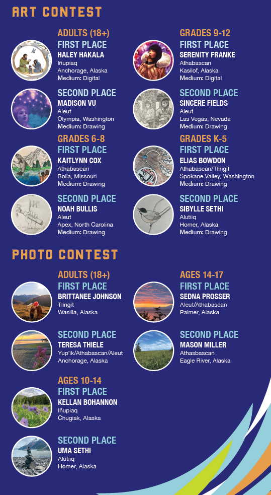 This year’s theme was “Building the Future, Guided by Tradition.” Winning artists and photographers received cash prizes and will have their entries displayed at our fall Friendship Potlatches. Certain artwork will also be chosen for the 2026 CIRI calendar. Congratulations to all our winners!